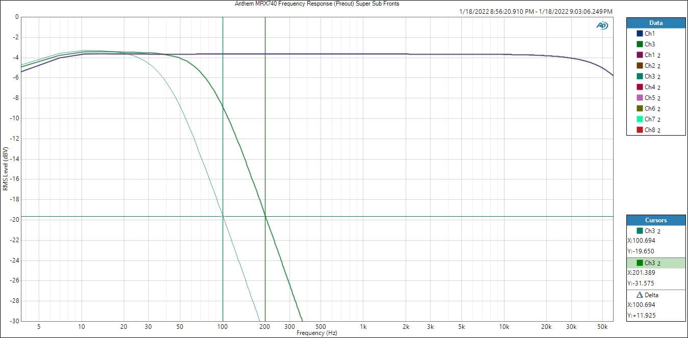 Anthem MRX740/1140 Bass Management Frequency Response
