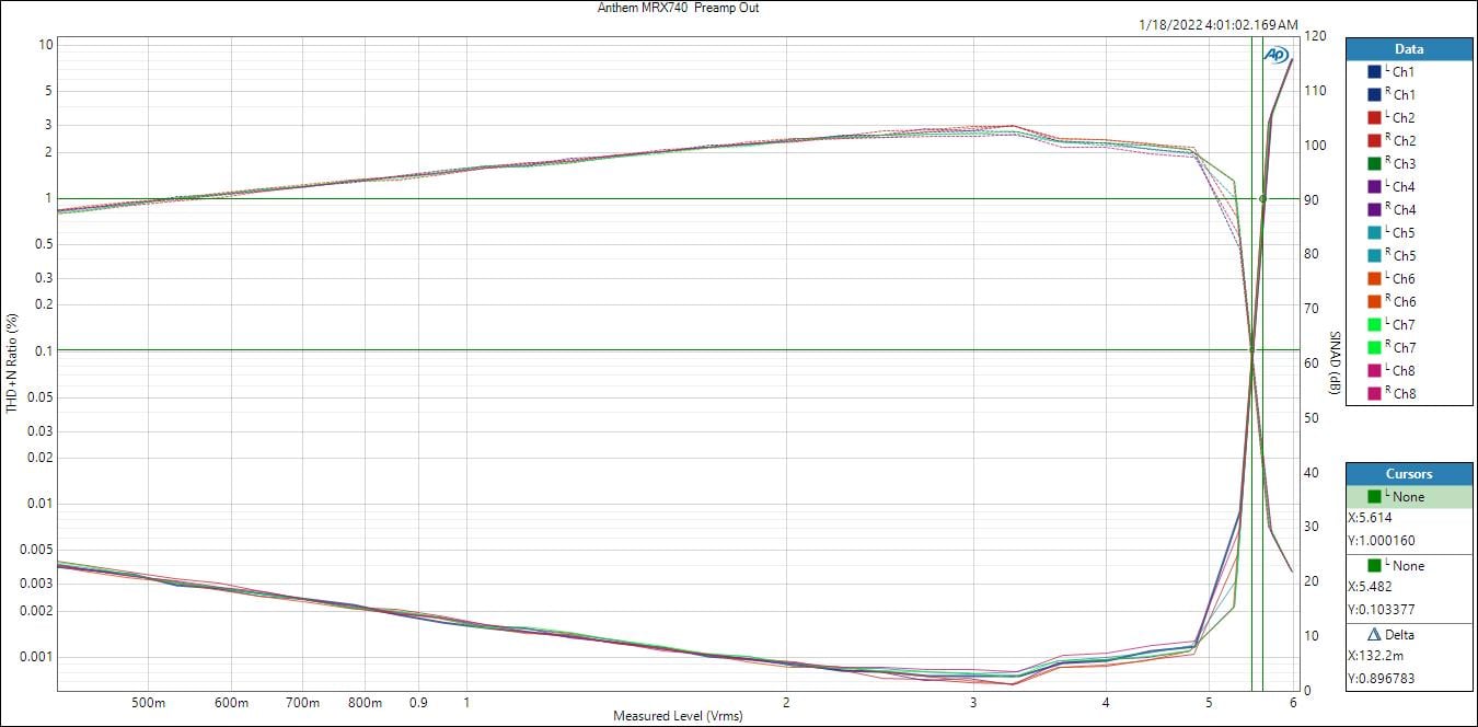 Anthem MRX740 CH to CH Crosstalk Preamp Outputs