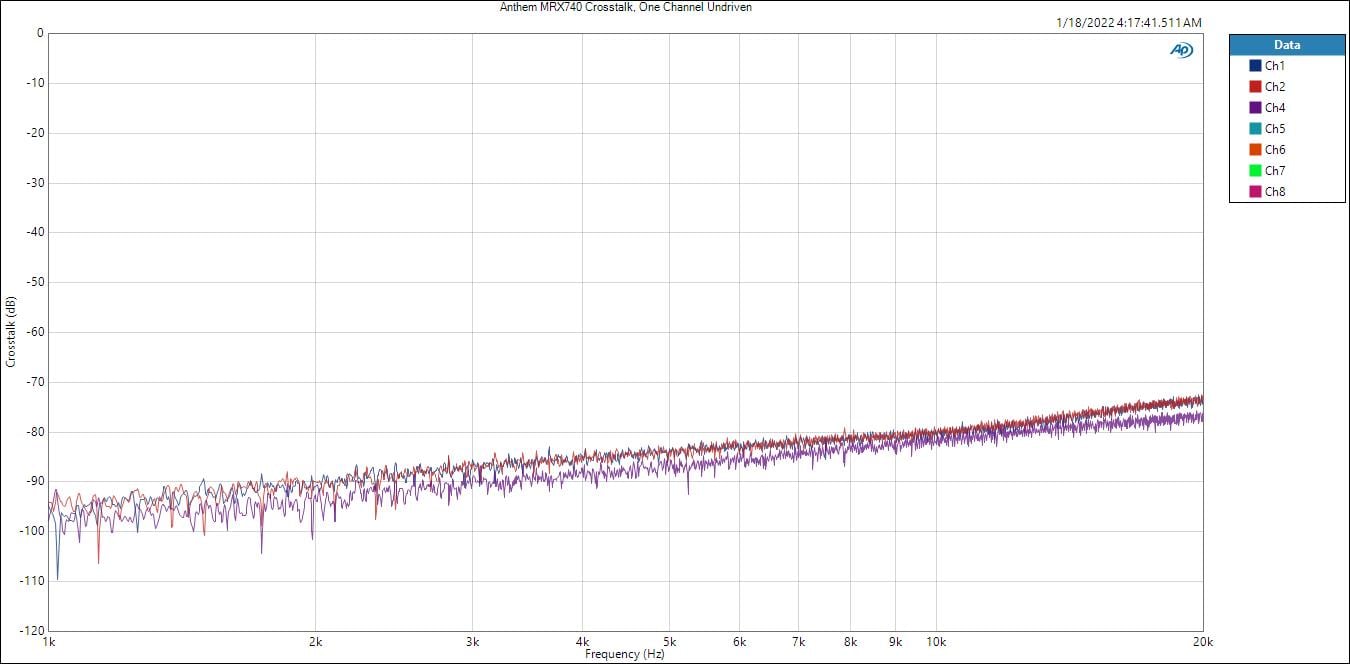 Anthem MRX740 CH-CH Crosstalk (1CH, Undriven) @ 1 watt