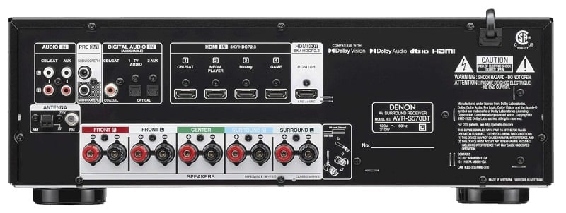 AVR-S570BT: For movie lovers looking to take the first step in upgrading their home theater experience or those who want better quality sound in a smaller space, this powerful 5.2 channel AVR, with 70W per channel, is the perfect entry-level accompaniment to any users’ set-up. The Denon AVR-S570BT is available in North America only.
