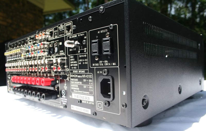 As you'd expect with a receiver this feature laden, it is heavy and well built. All the connections in back make for some very tight work and we wouldn't mind seeing a reduction in the number of composite/s-video connections to clean things up a bit. The five-way binding posts are located very close together and lend themselves to banana plugs rather than any other connection type. While we know from experience it is possible to use a bare wire connection, we higher recommend you invest in a few cheap banana plugs as this will make hooking up your receiver much MUCH easier and later changes/upgrades much less painful. Nothing is as irritating as moving your receiver to add a component just to pull loose a bare wire connection which usually snowballs into having to rewire the entire back of the unit.