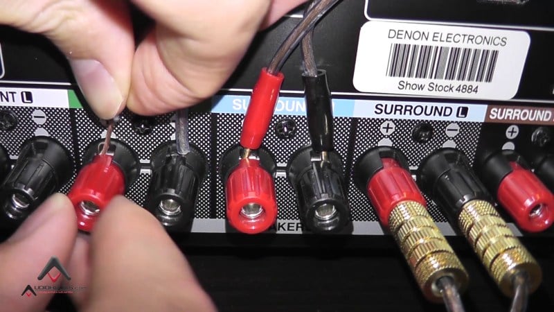 Close-up of the Denon AVR-S700W's binding posts.