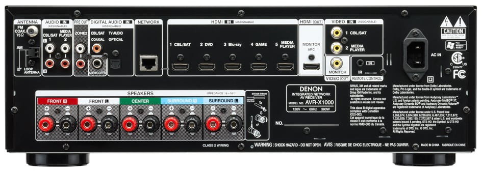 The least expensive in the new IN-Command line is the AVR-X1000. This 5.1 receiver sports 80 watts per channel and is rated as low as 6 ohms. It weighs in at a touch over 18 pounds, has six HDMI inputs, one output, and a ton of networking options.
