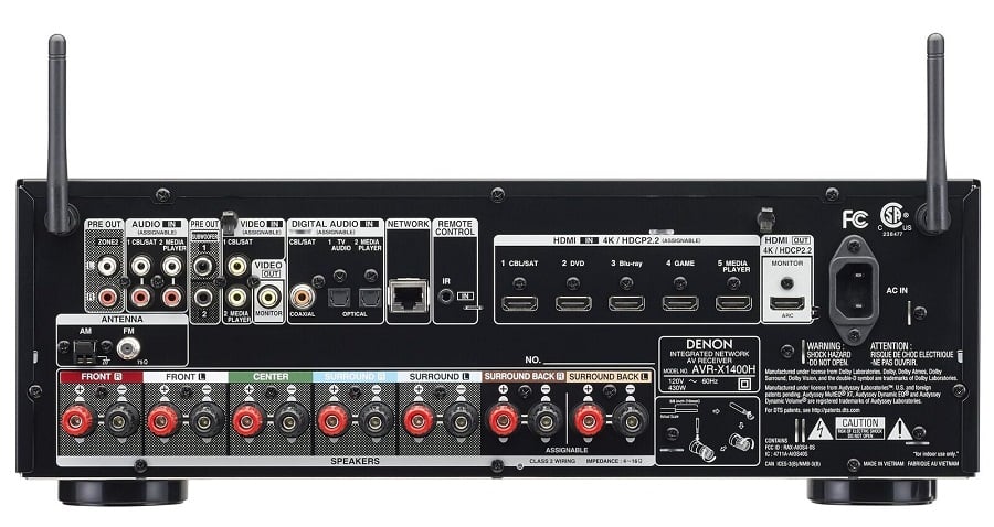 With 80W per channel at 8 ohms, 20 Hz~20 kHz, 0.08% THD, the AVR-X1400H still has a decent amount of power to deliver a fully immersive Dolby Atmos/DTS:X effect in a medium sized room. It come with six HDMI inputs – including one on the front panel for convenient temporary hook-ups for plenty of connectivity options for modern playback devices.