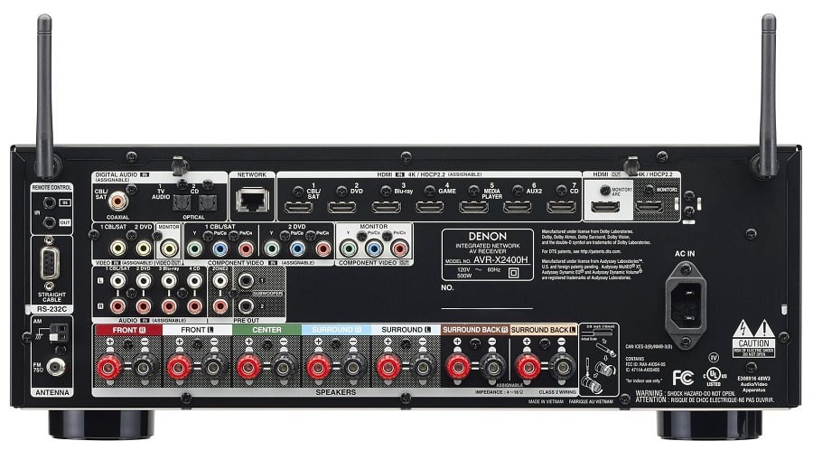 The AVR-X2400H is a 7.2-channel design, and is rated at 95 watts per channel at