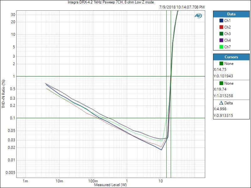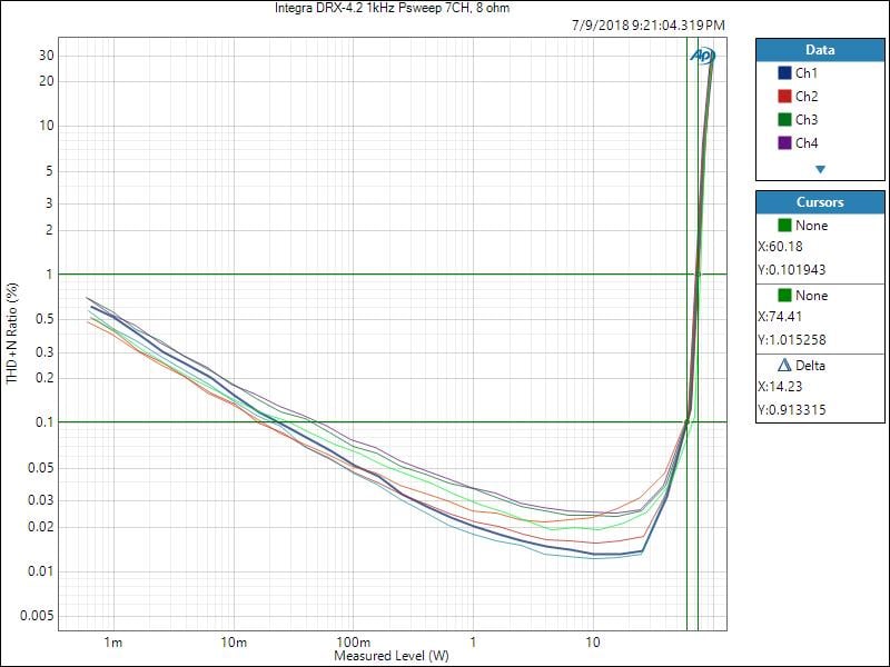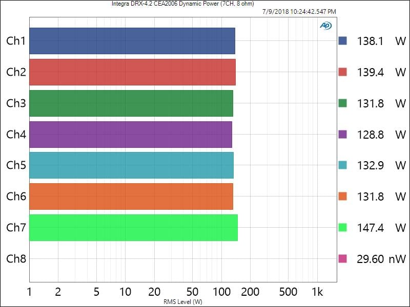 Integra DRX-4.3 Dynamic (7CH) Power Test - 8 ohms