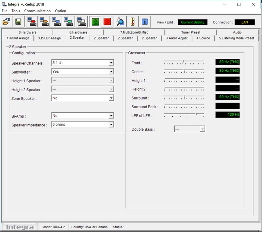 Integra DRX-4.3 Bass Management Setup