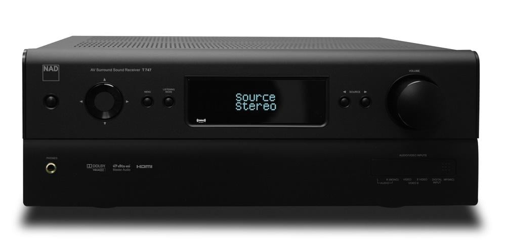NAD's latest round of receivers include an updated look and host of features to match their competitors which is most evident in the new T 747 A/V receiver. NAD's audio centric philosophy has established their solid reputation of no nonsense performance over a barrage of useless features most consumers won't utilize. Unlike most of NAD's competitors in this price range, they don't seem to overstate power claims and in fact fully disclose their power ratings via All Channels Driven (60 wpc x 7) and the FTC method most competitors use which would put them at 120 wpc x 7. Regardless of their power rating, you can tell this receiver has a meaty power supply simply from the heft of its 36lbs chassis.