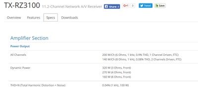 Onkyo Power Rating of TX-RZ3100 Per their Website