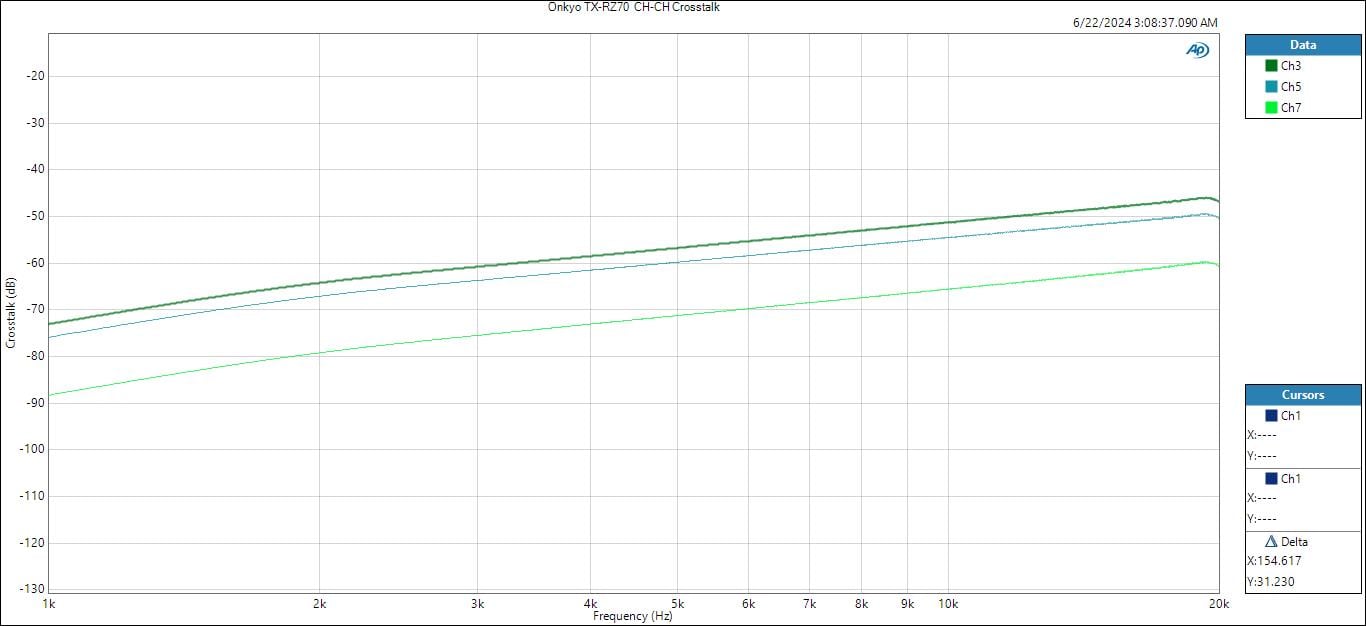Onkyo TX-RZ70 CH-CH Crosstalk (1CH, Undriven) @ 1 watt
