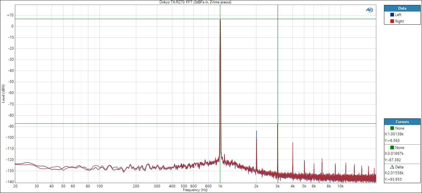 Onkyo TX-RZ70 FFT Preout (2Vrms out, 0dbFS input)
