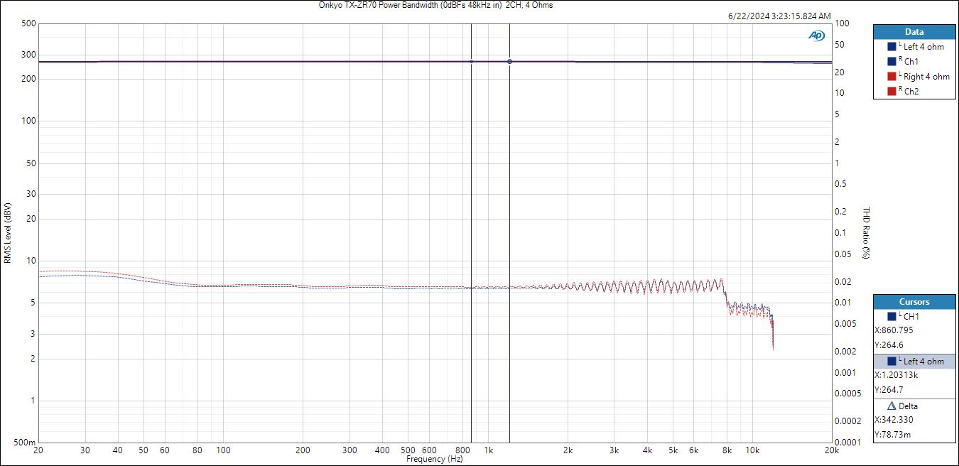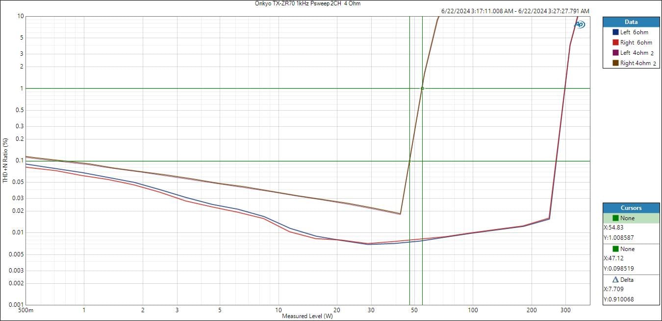 Onkyo TX-RZ70 1kHz PSweep (2CH) – 4 ohms