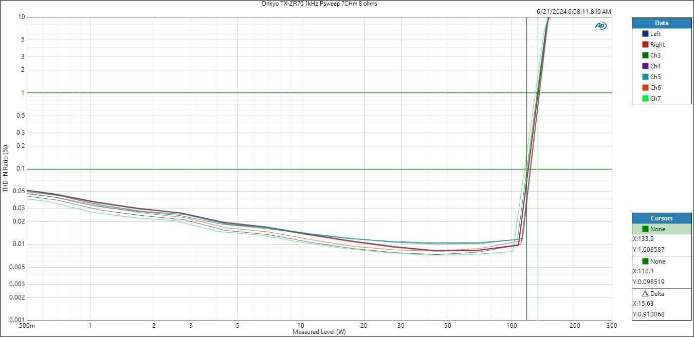 Onkyo TX-RZ70 1kHz PSweep (7CH) - 8 ohms