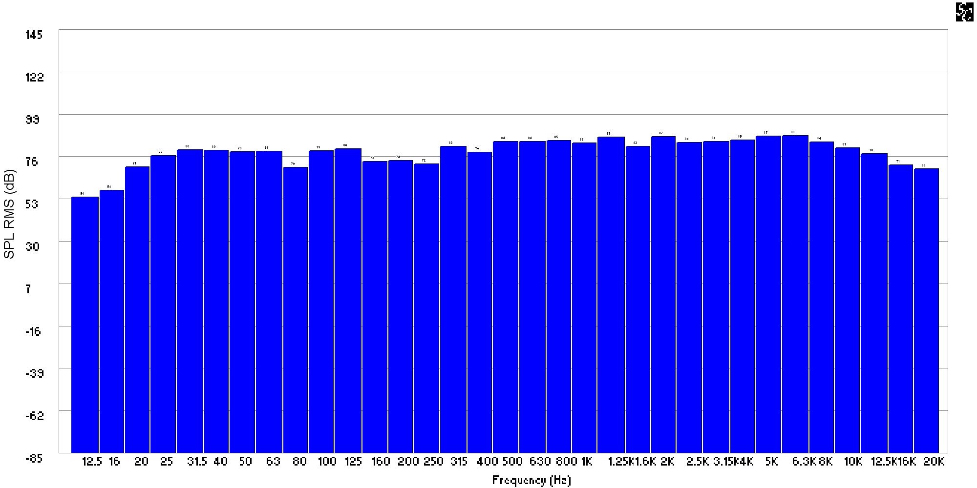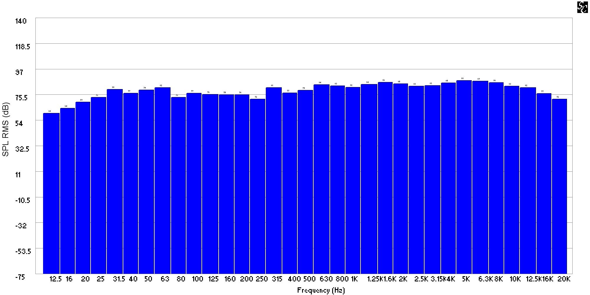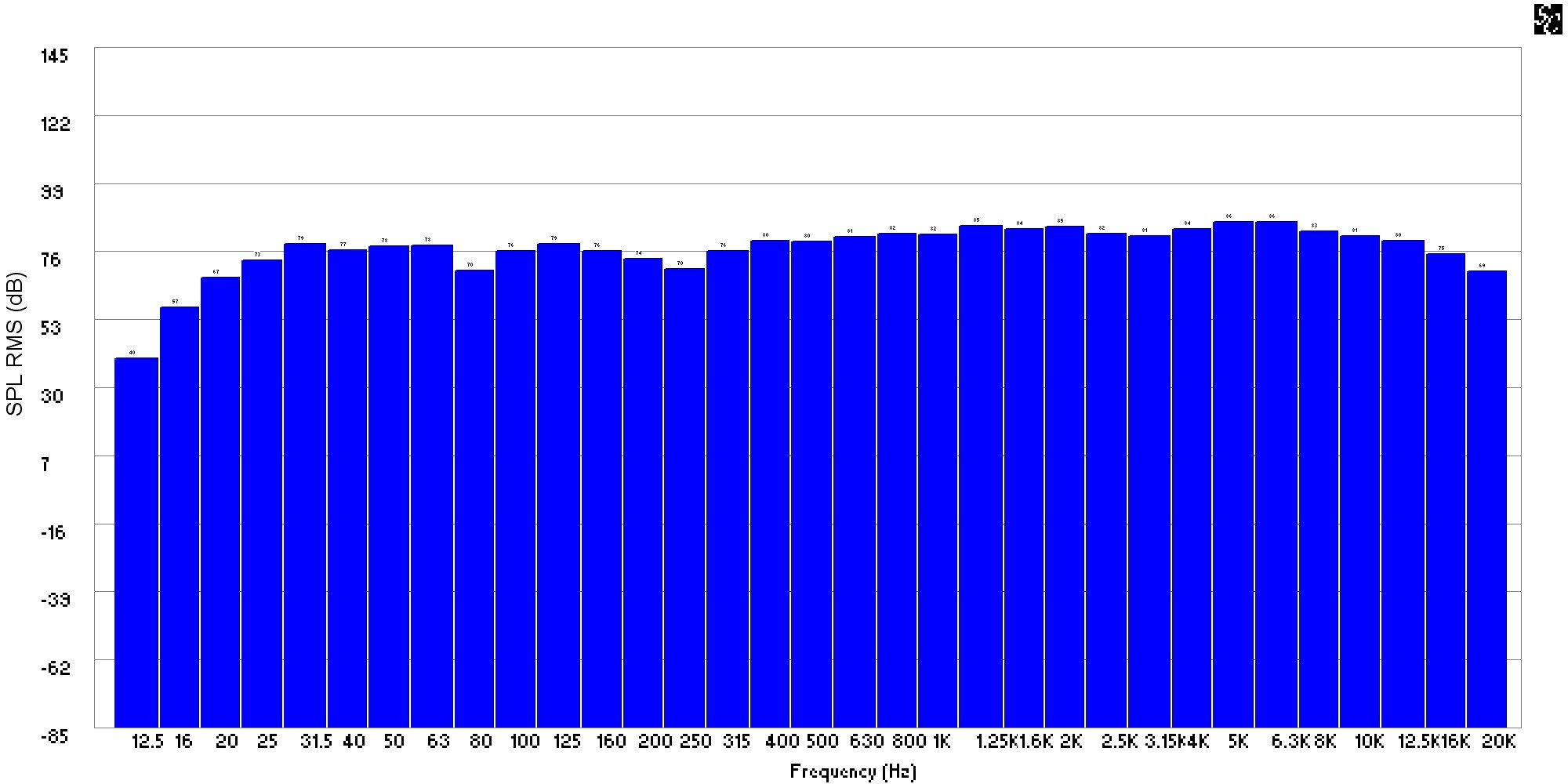 Test measurements were then performed at the primary and secondary listening positions for both the left and right main channels at an SPL of 80dB at each listening position. The primary listening position is located approximately centered on the front L/C/R channels and at the approximate center of all calibration settings for time delay. The secondary measurement position is located to the left and forward of the primary position near the room boundary.