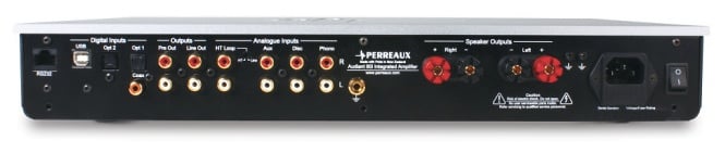Upsampling is important for Perreaux and the Audiant 80i will upsample everything to 24-bit/96kHz including the audio over USB, the two optical, single coaxial digital, and two additional analogue RCA (aside from the home theater and Phono) inputs. There is a single RCA output on the back with an arrow pointed down. We're not sure if that is some sort of grounding solution or a subwoofer output (we're hoping for the later but we wouldn't be surprised if the Audiant 80i didn't have bass management).