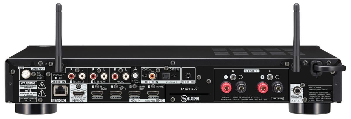 While the SX-S30 may be light on amplifier power, it's heavy on connectivity features making it the centerpiece of a nice modern two-channel audio system. This includes an integrated FM tuner (antenna included) with 40 memory pre-sets. The RDS function displays song and program information.
