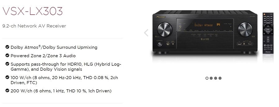 It Is good to see that both Pioneer and Onkyo are responding to Audioholics Inflated Power Ratings articles by listing unclipped full bandwidth power with two-channels driven into 8 ohm loads per FTC mandate. The VSX-LX303 is rated at 100 W/Ch (8 ohms, 20Hz–20 kHz, THD 0.08%, 2-ch driven, FTC) and comes with Pioneer’s Direct Energy amp design to deliver a more stable and precise high-output power through all nine channels. The LX-303 is augmented by 384 kHz/32-bit DAC, a quad-core 32-bit chip and an Aureus floating-point DSP chip all helping to facilitate 9.2-ch object-based audio playback of Dolby Atmos and DTS:X. Alternatively, the four Height/Surround Back outputs can drive stereo speakers in Zone 2 and Zone 3 with a 5.2-ch setup in the main room, or a 5.2.2-ch layout with Powered Zone 2 distribution. As well as analog, multiple DACs support digital source playback in up to three zones simultaneously. These are very cool features and flexibility at this price point.