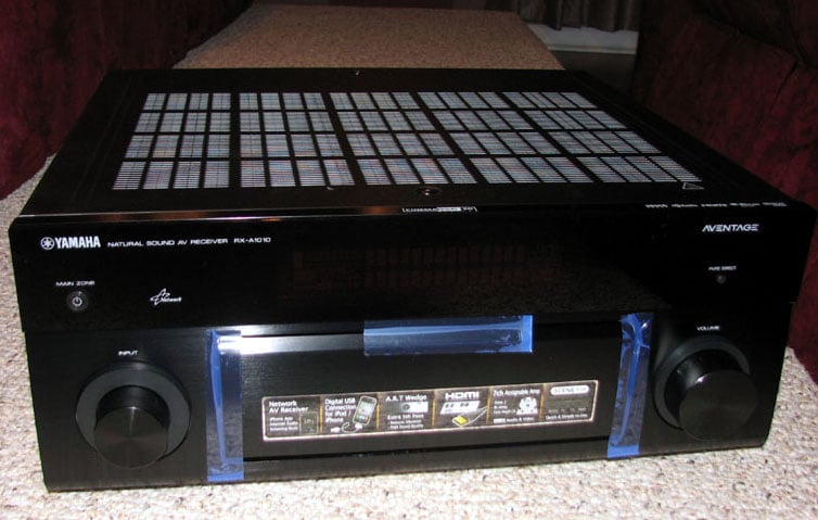 keep up with technology in such a fast paced tech world, but Yamaha doesn’t seem to simply keep up so much as they seem to set trends. Last year, when Yamaha launched their AVENTAGE line of receivers, we knew they meant business. AVENTAGE was designed with the audiophile in mind. Yamaha beefed up the amplifier and analog sections in their entire AVENTAGE line of receivers while still providing a full fledged set of features not found in many of their competitor models. The RX-A1010 represents the middle of their AVENTAGE lineup of A/V receivers. At just under $1,100, the 7.1 channel RX-A1010 has just about every networking feature and streaming service currently available while also supporting all of the latest HD audio and video formats, including full 3D support. Let’s take a tour of this receiver to see why it earns its AVENTAGE badge and see why it’s NOT just a problematic middle child.
