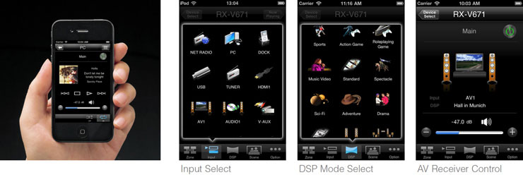 Yamaha has thrown a lot of goodies into the RX-A1010 A/V receiver. We covered many of the similar features in our RX-A3000 review but let’s do a brief recap of RX-A1010 specific ones. For one, you’ve got full control of your RX-A1010 via a FREE downloadable Apple iPhone or Android App. In fact, Yamaha just announced an update to their App ver 2.0 which allows you to stream audio directly from your Smart Phone to the receiver. Want to impress your friends? Just show them how you are controlling your entire home theater system via your smart phone. That is certainly a worthy conversational piece at parties while you are slamming some brews with your buds and switching out the tunes (it's even more impressive if you're standing in the back yard listening to outdoor speakers!) Yamaha’s App gives you a lot more control over your AVENTAGE receiver than it did with its first iteration on the RX-Z7 and the graphical interface is much improved too.