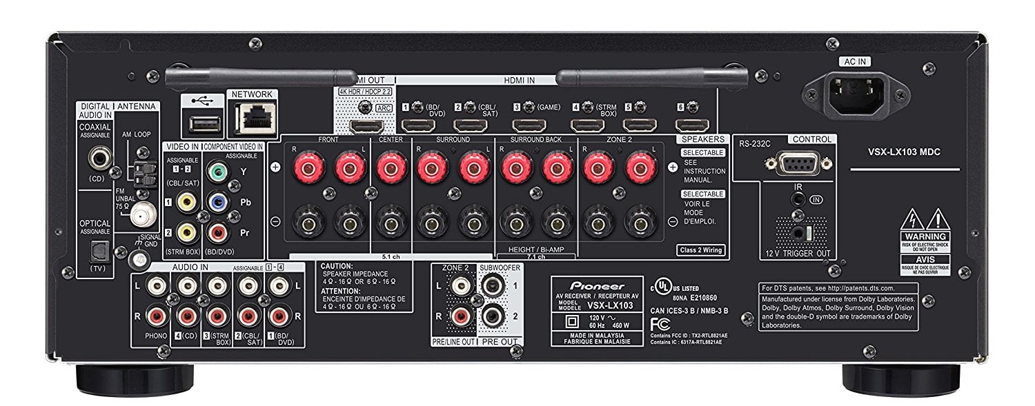 But the VSX-LX103 does have many great features for a $600 receiver including 5.2.2 channel surround sound with Dolby Atmos and DTS:X, and Powered Zone 2 outputs to enjoy audio from speakers in another room.