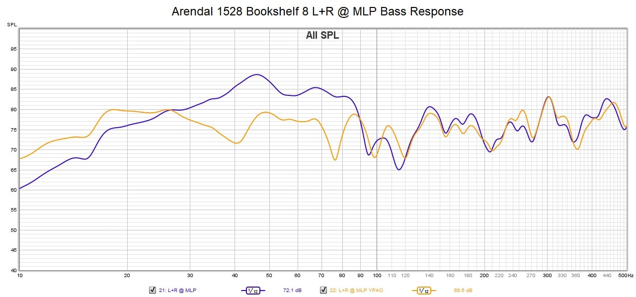 Arendal Sound 1528 L+R @ MLP – Blue – No YPAO; Yellow -YPAO