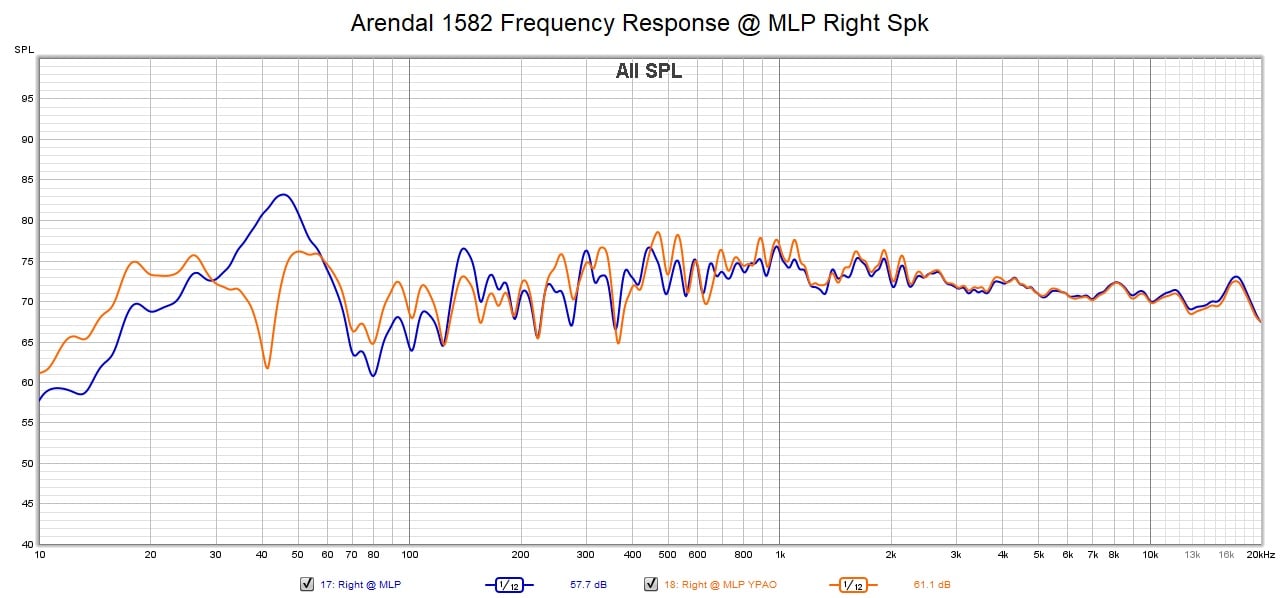 Arendal Sound 1528 Right Speaker @ MLP – Blue – No YPAO; Yellow -YPAO