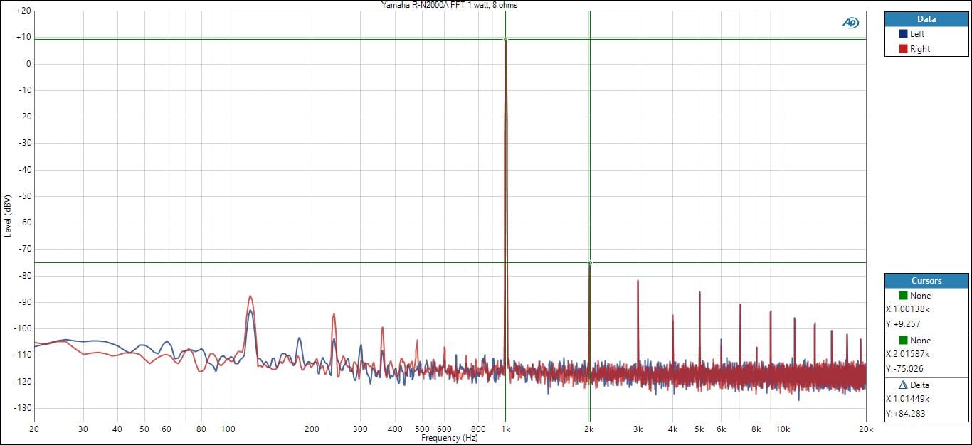 Yamaha R-N2000A 1 kHz FFT @ 2.83Vrms (1 watt, 8 ohms)