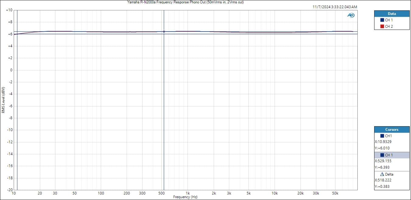 Yamaha R-N2000A Phono Frequency Response (5mVrms input)