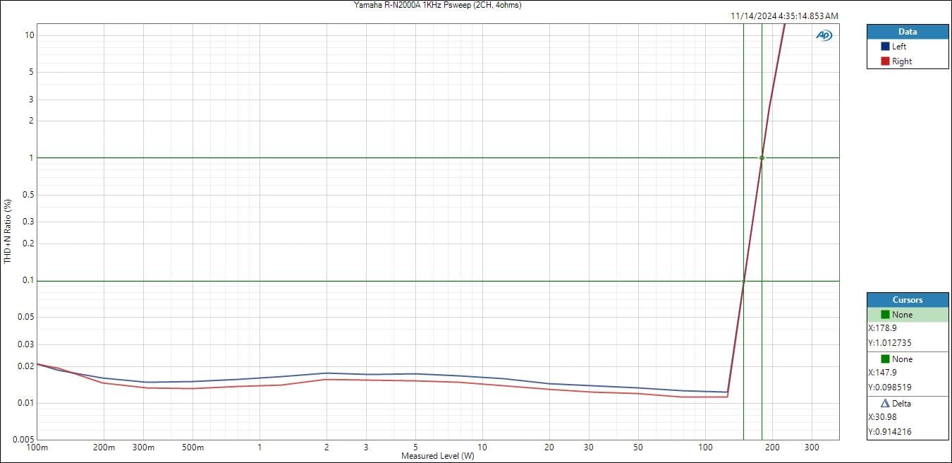 Yamaha R-N2000A 1kHz PSweep (2CH) - 4 ohms