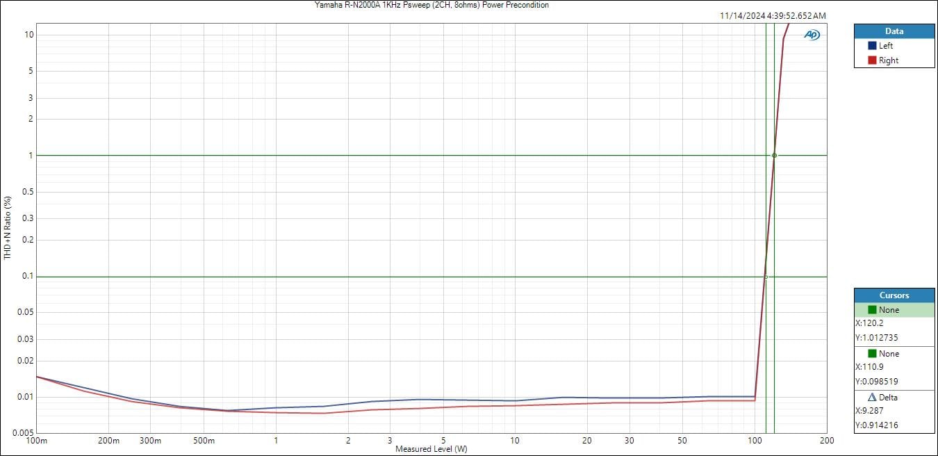 Yamaha R-N2000A 1kHz PSweep (2CH) - 8 ohms