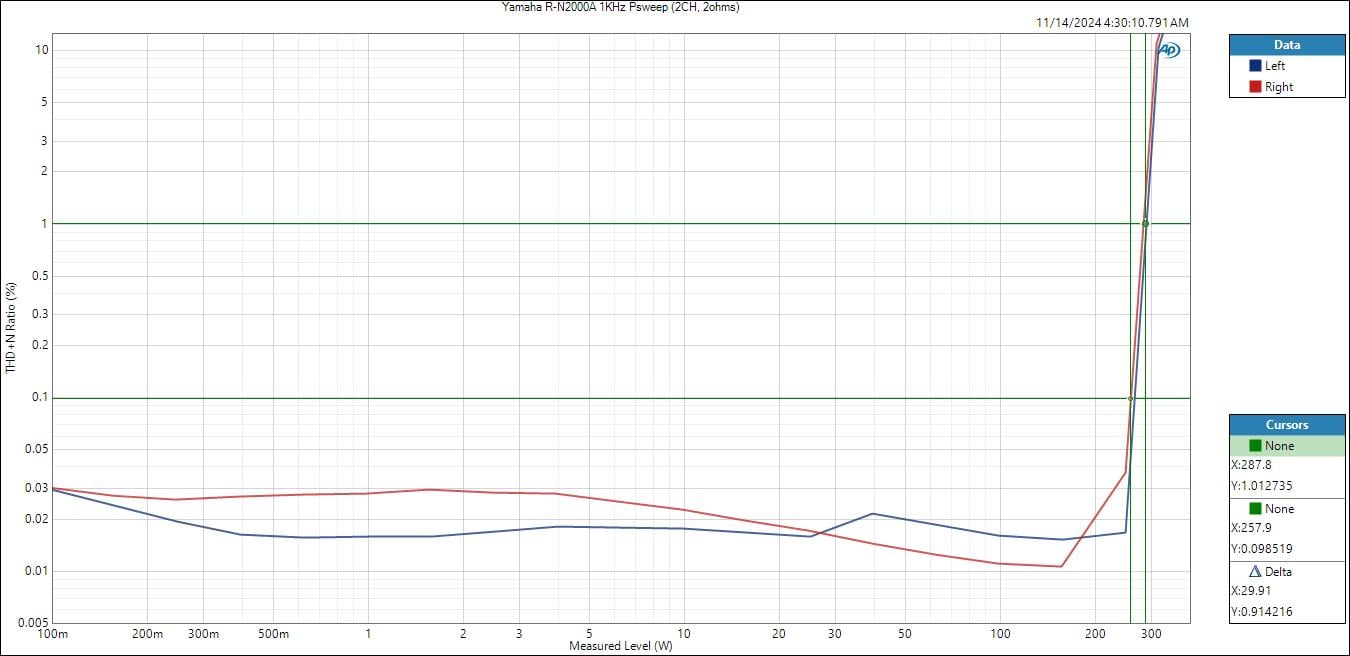 Yamaha R-N2000A 1kHz PSweep (2CH) - 2 ohms