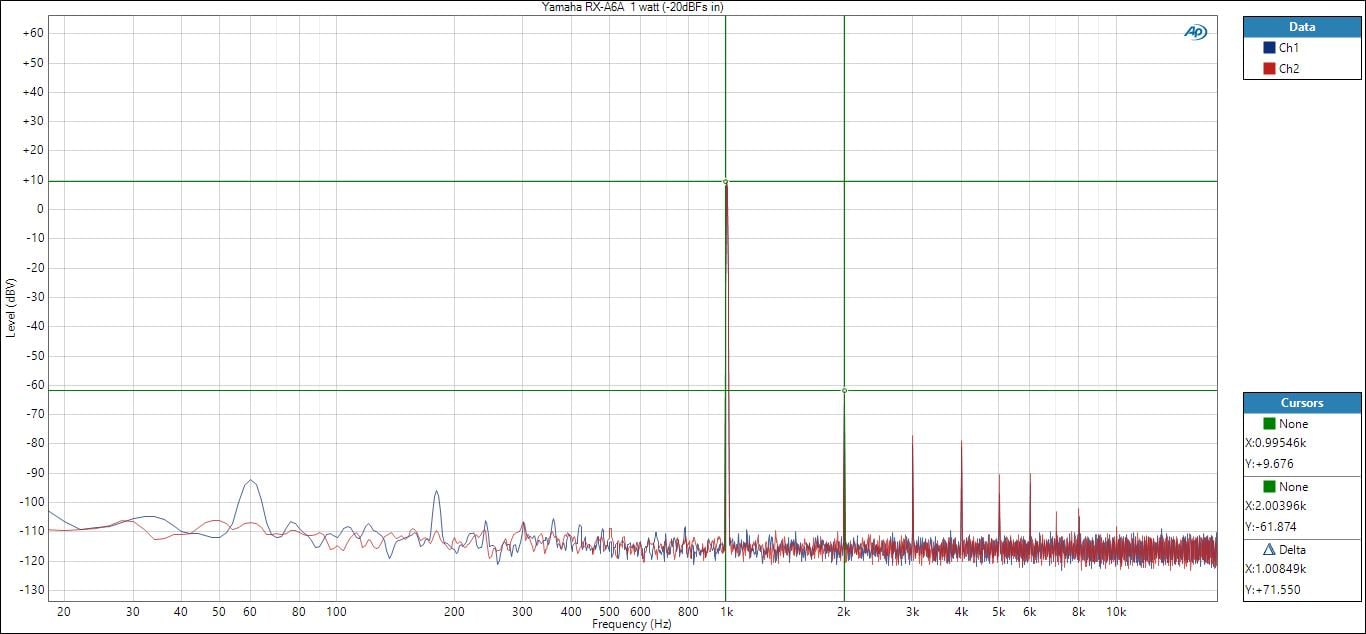 Yamaha FFT Distortion Analysis (1 watt, 8 ohms)