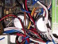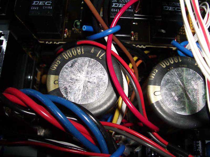 Yamaha RX-V4600 power supply capacitors (left); RX-V2500 capacitors (right)