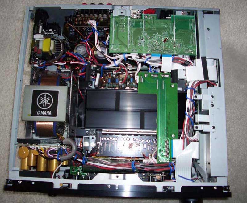 Yamaha RX-V4600 insides (left); Yamaha RX-V2500 insides (right)