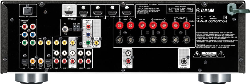 The second major advance in the RX-V567 is the ability to upconvert to HDMI. This means that your normal analogue video sources can now be converted to HDMI so that you only have a run a single HDMI cable to your display for video. With the other Yamaha offerings, if you had HDMI, component, and composite sources, you would need to run all three cable types to your display. Not any more. On top of that, the receiver can upscale those signals to 1080p (or other resolutions depending on your display). Buyers should note that it may have problems with certain older game consoles with 480p or less resolution and it doesn't scale HDMI inputs. It also is not utilizing a branded upscaling chipset (like some of the competition) which means we don't know how well it will scale the signal. Still, this is a major advance over the previous models.