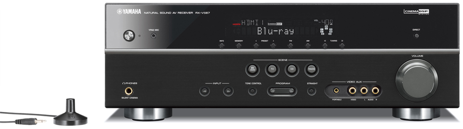Yamaha is touting not only their HDMI 1.4 inputs and outputs but also their increased functionality. While you'll need a firmware update to fully take advantage of the upcoming 3-D features (done via computer download burned to CD and played through the receiver), out of the box the RX-V467 and RX-V56 support Audio Return Channel, CEC functionality, and HDMI Stand by-through (allowing you to change inputs while the unit is in stand-by mode). Also included with the RX-V567 is Yamaha's YPAO - their room correction system with 7-band parametric EQ. With the included mic the receiver will perform an auto-setup function (level matching the speakers and such) and will perform some room correction. From an ease of use standpoint, this a very expected feature at this price point.