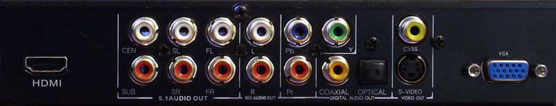 The back panel has all the usual suspects (and then some) as far as outputs are concerned. An HDCP-free HDMI output is joined by component video, coax and optical S/PDIF connections, composite, s-video, and analogue 5.1 audio outputs (great for people who have older receivers without DTS capability). An HD15/RGB output is also provided which supports VGA/SVGA/XGA/SXGA resolutions (up to 1280 x 1024). You can set this output to function in the desired resolution by selecting it in the Display > TV System setup menu. As we mentioned earlier, one of the big attractors of this unit is its ability to digitally upconvert DVDs to up to 1080p output from both the HDMI output as well as the component output.