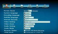 The system menu is where you'll be setting your output and resolution (under Video Setting) . Make sure you choose the right output and don't just choose the first resolution that looks right to you. You'll also want to the look at the Video Zoom. The default is "Fit to Screen" which seems to work pretty well for me overall. You may be tempted to check the "Enable HD Mode Browser" box. The basic idea is that this enables more of the menu to be show on the screen at a time. Personally, I found that much of the text (even on my 42" display) was illegible with this enabled. There is also a screensaver option which defaults at 10 minutes but can be changed to anything between 1 and 60 minutes in one minute intervals. You cannot disable the screensaver.