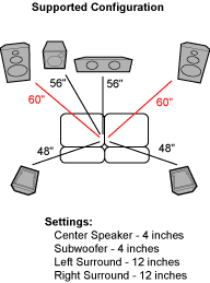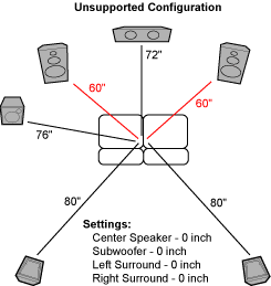 Both SACD and DVD-Audio utilize the rather meager bass management and distance delay settings of the DV-970HD. Front, Center, and Rear speakers can be set to "Large" or "Small" (Center and Surrounds can be set to "Off" of course). The Subwoofer output can be set to "On" or "Off". Channel Delay can be configured in 4-inch increments. Unfortunately, setting delays is restrictive and involves a bit of math. To set the delay, simply subtract the distance of the various speakers (in inches) from the Main speaker distance relative to the listening position - the result is the amount of distance delay compensation that needs to be added to the Surrounds, Sub and/or Center Channel. You cannot configure the rear speakers or center channel as being farther away from the listening position than the Mains, however as there is no way to "add" delay to the main speakers and the system is not setup to work in absolute distance units. Overall, this makes the delay settings rather cumbersome (and useless for certain room configurations). Note the following supported and unsupported configurations: