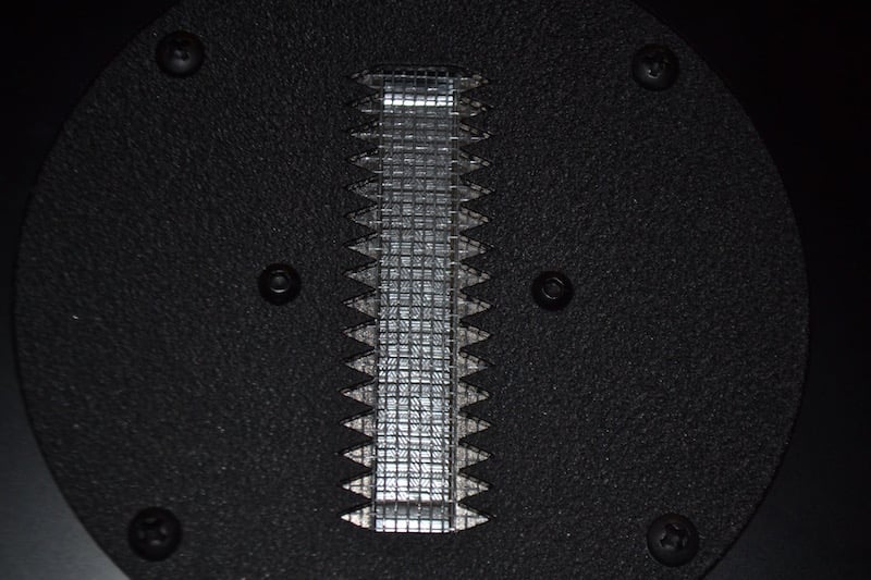 Despite the different finishes and cabinets, all models have a 64-10 OEM RAAL tweeter, a 2.5” Tectonic Balanced Mode Radiator (BMR) midrange driver, and the latest 7” Scan Speak 8545-01 woofer with a low damping SBR rubber surround and coated air dried paper/carbon fiber cone. This speaker has an anechoic frequency response of 30Hz-20kHz (+/- 2dB), a sensitivity of 84.5 dB at 2.83V/1m, and 6-ohm impedance. They also have a rear 2” heavily inner/outer flared port near the top of the cabinet. The speakers sport a pair of gold plated, knurled, five-way binding posts on the rear of the cabinet. The RAAL ribbon tweeter is the same that is used in Dennis’ New Philharmonitor. As explained on the Philharmonic Audio website, the BMR midrange driver, unlike many conventional radiator drivers, uses strategically placed weights in the diaphragm to counteract the mass of the voice coil at higher frequencies. It operates in two different bending wave motions in the higher frequencies and switches to a piston-like motion in the lower frequencies.