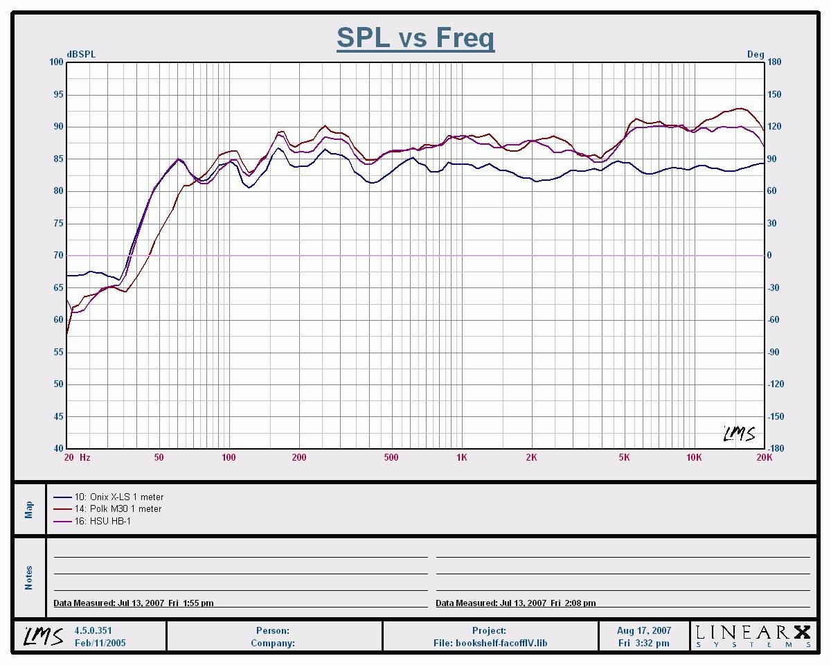 Onix x-ls, Polk M30 & HSU HB-1 Frequency Response