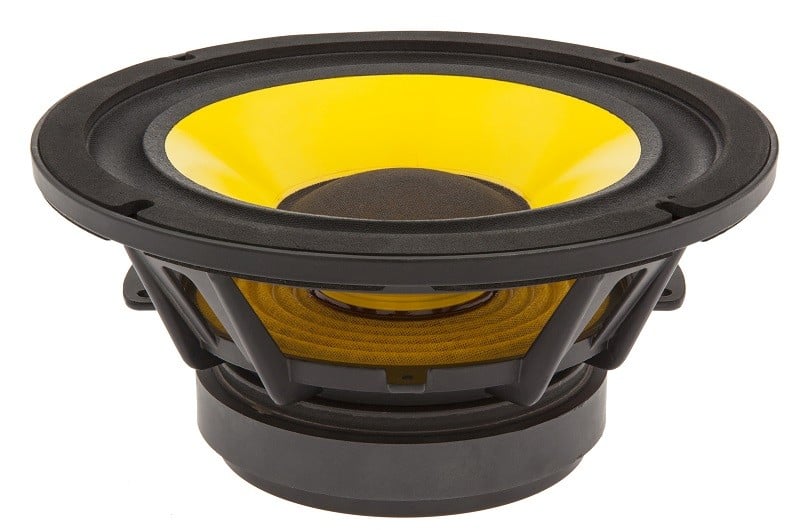 - Woofer: Cast frame 8˝ polypropylene cone woofer with treated cloth surround, flat polycotton spider and high temperature 2˝ edge wound copper clad aluminum voice coil