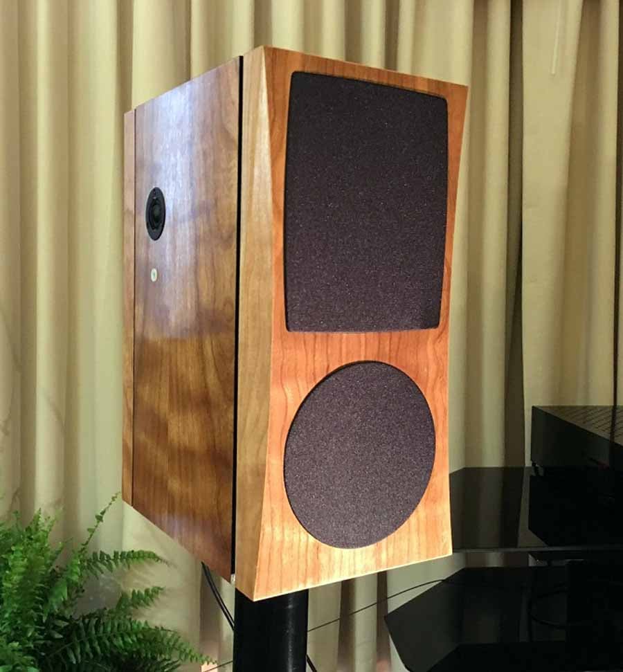 The Carmalita (a much better name than the originally planned name “zA1.1a”) is a powerful bookshelf speaker using an electrostatic tweeter and heavy-duty 6.5” bass driver. It also has an optional side-firing tweeter which can be turned on or off via a rear switch. The side-firing tweeter adds ambience and also makes some treble audible at a standing height, as the electrostatic tweeter very tightly controls vertical dispersion. For those listening at a sitting position, tightly controlled vertical dispersion has a significant advantage in reducing floor and ceiling acoustic reflections, which may be especially advantageous in rooms with hard floors. The horizontal dispersion is wider than the vertical although still tightly controlled, and maintains a linear response off the direct axis. One design choice that greatly assists in the controlling the directivity in the Carmelita is an electrostatic speaker with a monopolar radiation pattern, which is an unconventional design for an electrostats. This allows for much greater placement flexibility for achieving good sound than typical dipole electrostatic speakers which need large stand-off distances from walls for optimal sound. The large 7”x8” electrostatic tweeter is very capable down to mid frequencies and allows for a low 500 Hz crossover point, which itself permits the woofer to be better optimized for bass playback, having been alleviated of the demands of midrange playback. The low crossover point also makes off-axis dispersion more consistent over a greater range of frequencies.