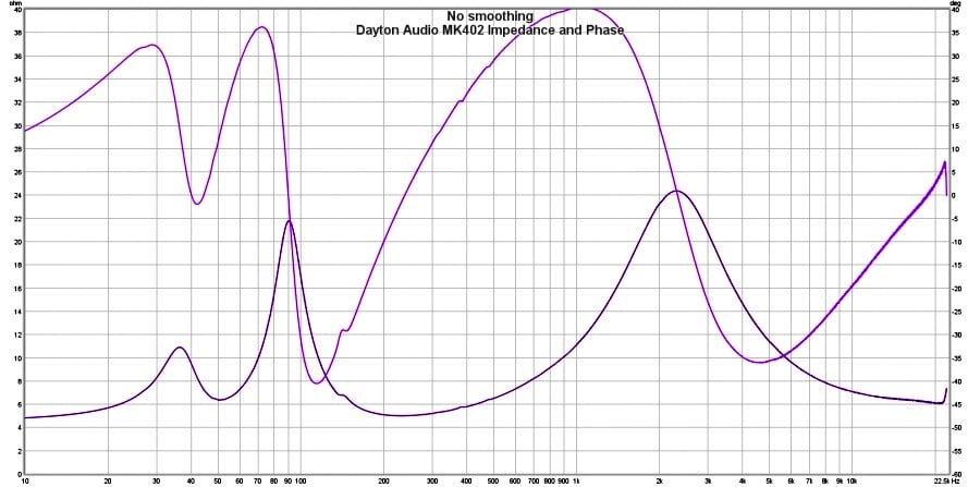 Dayton Audio MK402 (left) and MK442 (right) Impedance and Phase Response