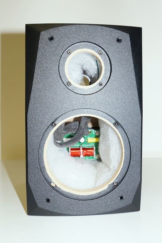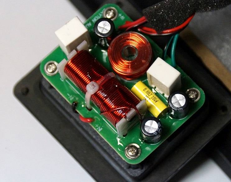 Other strengths are a relatively nice appearance for the cost, and also a very manageable size, of course. The build quality is good for a speaker of its pricing; the woofer and tweeter are not bottom-of the-barrel parts, and they have actual crossover circuits unlike many sub-$100 speakers that only use a capacitor on the tweeter. This is even more true of the MK442 crossover which has to be the most substantial crossover circuit on any speaker anywhere near the same cost.