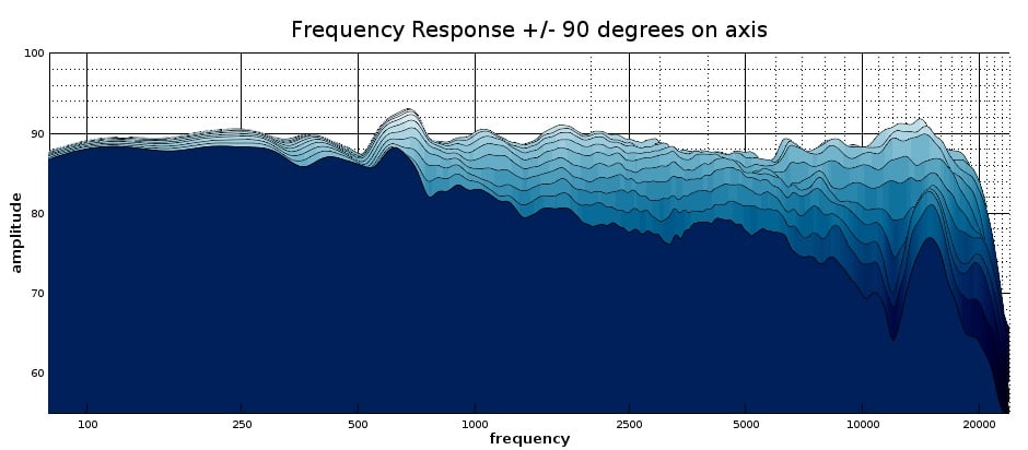 Monoprice K-BAS Bookshelf Speakers horizontal frequency response +/-90 degrees from axis: 3D view