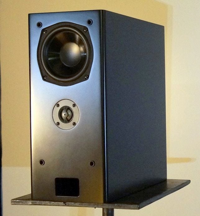 In my approximately 24’ by 13’ listening room, I set up the speakers with equal stand-off distances between the backwall and sidewall, and equal distance between speakers and listening position, with weeter at ear level and the speakers facing the listening position directly. A Pioneer SC-55 receiver was used in ‘Pure Direct’ mode, so no tonal processing would interfere with the speakers’ natural sound, and no subwoofers were there to disguise its low frequency abilities. Speaker distance from listening position is about 10 feet.