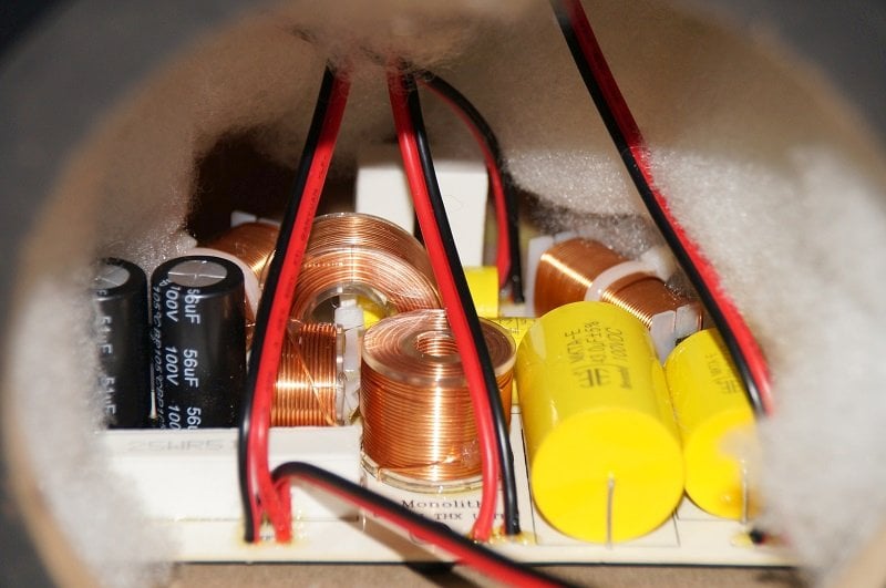 The 6.5” woofers use long-fiber pulp cones in stamped steel baskets with some chunky ¾” x 4” magnets in the motor. The midrange and tweeter use silk domes and are each housed in their own enclosed space in a plastic enclosure. The structure of the midrange is much more like that of a traditional dome tweeter on a larger scale rather than a usual midrange cone. All of the drivers use shorting rings which reduce even-order distortion as well as extending their operational bandwidth. The drivers are crossed over at 550 Hz and 1.9 kHz using fourth-order slopes. The choice of a 1.9 kHz crossover seems like an unusually low crossover for a three-way speaker. While midrange driver can certainly handle higher frequencies than 1.9 kHz, I am told by the speakers’ designer that the crossover frequencies were chosen because they added up the the best performance overall when looking at on and off-axis response and distortion performance. Altogether the quality and quantity of drivers on the Monolith THX speakers seem to be unexpectedly good considering the pricing.