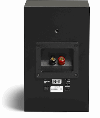 The NHT SuperZero 2.0 mini-monitors sport a 4.5" paper cone woofer and a 1" soft dome tweeter. They didn't try to extend the bass through a port and instead opted for a sealed design. This limits the rated output down to only 85Hz. You'll probably want to experiment with a crossover setting higher than that though if the speakers are wall mounted, boundary reinforcement might extend it low enough to crossover at the THX recommended 80Hz. The NHT SuperZero 2.0's are really designed to be wall mounted. They have a 1/4" #20 threaded insert in the back for use with a number of different mounting options including the Omnimount 10.0 sold by NHT ($25 a pop).