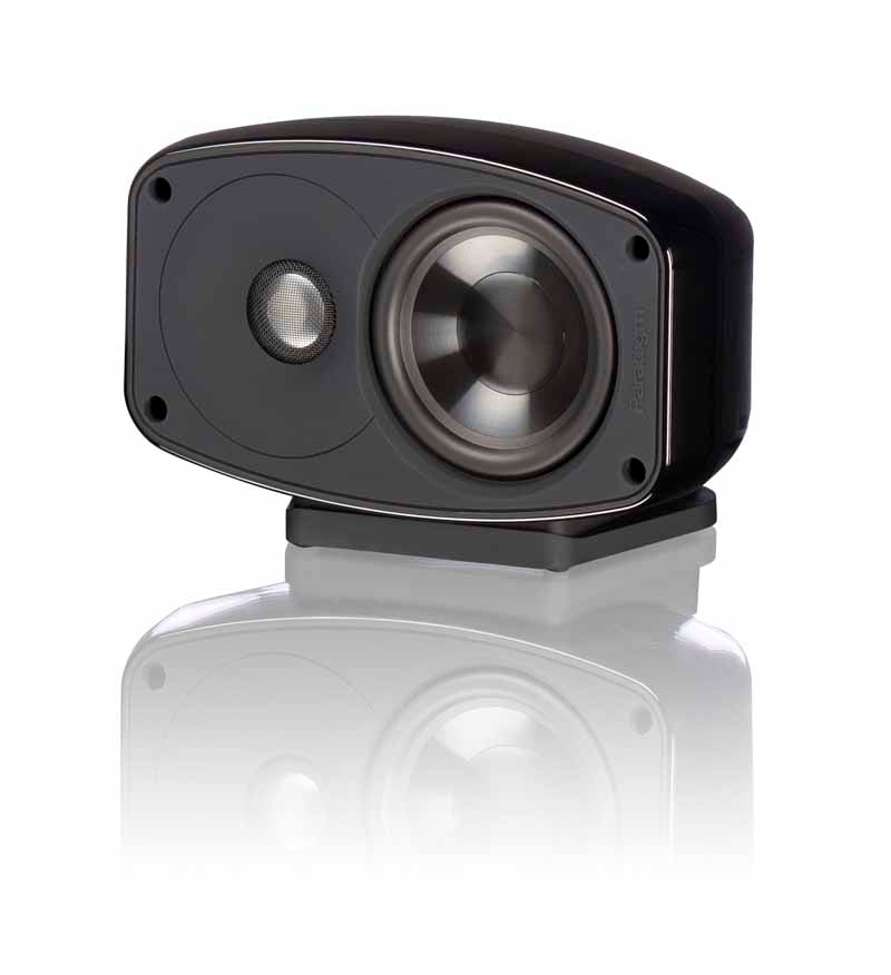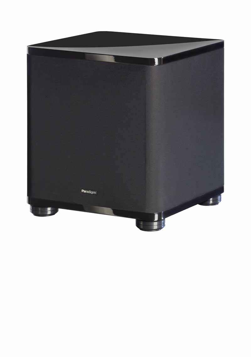 The Cinema line is rounded out by a new and improved Cinema Sub. Featuring an 8" high-excursion reinforced co-polymer driver and a high-velocity, low-turbulence port, this speaker promises an in-room (DIN) performance down to 32Hz (no -2dB point specified). The dual ports are rear-mounted which might make placement a bit tricky since placement near a boundary might generate bass bloat (maybe how they got the low point of 32Hz in the first place). The sub is fairly diminutive at 13.5" by 12.7" by 12.7". At just 21.4 pounds, the sub should be fairly easy to move around. According to Paradigm, the Cinema Sub has "flexible positions" with either the gloss or cloth sides up. From what we can tell, this means that the feet are not attached to the any point on the sub but, instead, are slipped underneath. A novel solution to a problem we didn't know anyone had. This doesn't, we think, reorient the driver at all (seems to be forward firing) so it is purely an aesthetic decision.